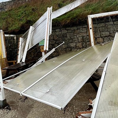 We hear from one cafe owner in Falmouth and the Environment Agency on the storm impact.