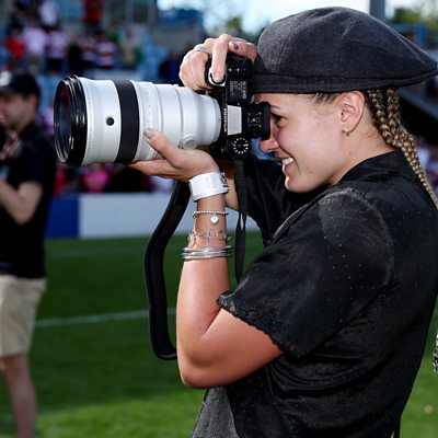 World Rugby Union Women's player of the year Ellie Kildunne discusses the power of photography and why she decided to pick up a camera. The England and Harlequins full-back won World Rugby's women's player of the year award after an impressive year that saw her crowned 2024 Women's Six Nations player of the championship, help England retain their WXV1 title and score 14 tries in nine tests for the Red Roses. Speaking with Sportsworld's Delyth Lloyd, the England player explained how injury led her to pick up her camera as a way of improving coverage of the women's game. Photo: England and Harlequins Rugby Player Ellie Kildunne takes photographs using her personal camera as she shoots the celebrations after Gloucester-Hartpury defeat Bristol Bears during the Allianz Premiership Women's Rugby Final match between Bristol Bears and Gloucester-Hartpury at Sandy Park on June 22, 2024 in Exeter, England. (Credit: Getty Images)
