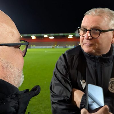 Stevenage assistant Neil Banfield reacts after the 2-0 win at home to Northampton Town.