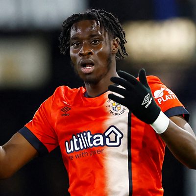 Luton Town forward Elijah Adebayo reacts after scoring against Swansea in their 1-1 draw.