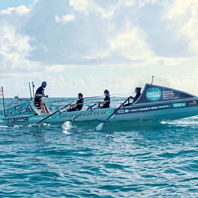 Sally Crabb and three other pilot gig rowers from Looe have completed the World's Toughest Row - aboard 'Oars of Thunder'. Pic: Studio Wallop