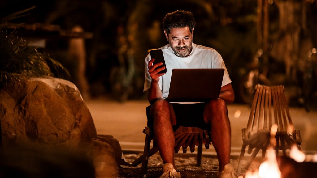 It's becoming increasingly popular to travel while working remotely. More than 70 countries now have specific visas for so-called digital nomads, but in some cities, there’s been a backlash. This clips was taken from an edition of Business Daily. (Picture: Man sitting in a deckchair looking at a mobile phone and laptop. Credit: Getty Images)