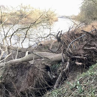 Damaged footpaths and an eroded riverbank from fallen trees spark concern