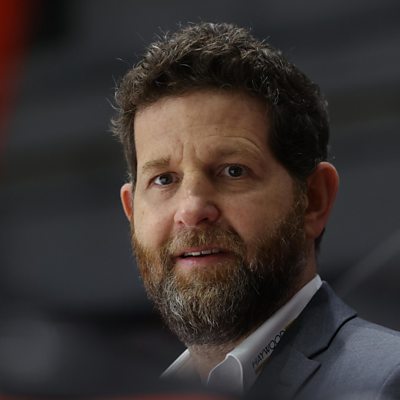 Sheffield Steelers head coach Aaron Fox speaking to Peter Spencer, ahead of their final weekend of the 2024-25 regular season. The Belfast Giants, Sheffield Steelers and Nottingham Panthers are all separated by four points going into the final two games.