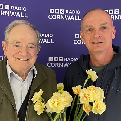 Ron Scamp from Falmouth and son Adrian talk daffodils with Julie.