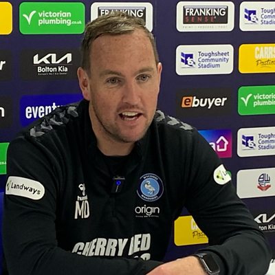 Mike Dodds reacts after going second in League One after beating Bolton Wanderers 2-0.