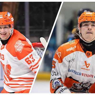 Sheffield Steelers head coach Aaron Fox speaking to Peter Spencer after re-signing Finnish duo Mikko Juusola and Joona Huttula.