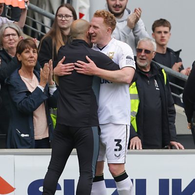 MK Dons legend Dean Lewington reacts after making his final appearance at Stadium MK.
