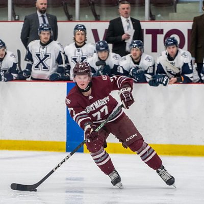 Canadian winger Derek Gentile speaking to Peter Spencer, after signing with the Sheffield Steelers.