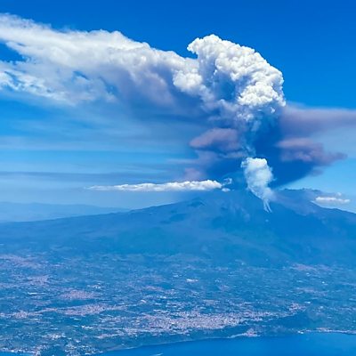 Jo and Jon Meek from Moretonhampstead were flying over Etna as it erupted