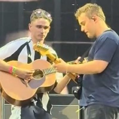 Joseph Simon was invited on stage to play with his hero Sam Fender