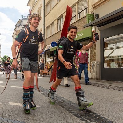 South West pair walk from London to the Alps... in Ski Boots
