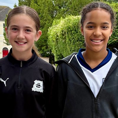 Two young footballers inspired by the win are April from Exeter and Dottie from Plymouth
