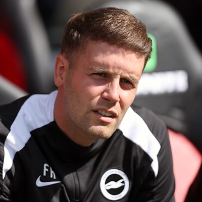 Albion head coach Fabian Hurzeler talks to Adrian Harms after the friendly at Southampton