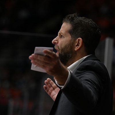 Sheffield Steelers head coach Aaron Fox speaking to Peter Spencer, after their 4-2 defeat to Nottingham in the Challenge Cup group stages.