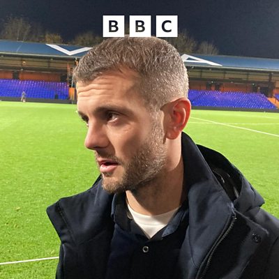Luton Town manager Jack Wilshere reacts after beating top of the league Stockport 3-0.