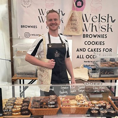 Dafydd Williams, perchennog busnes cacennau Welsh Whisk yn sôn am sut wnaeth ddechrau'r busnes fel hobi ac yna'n gadael ei swydd fel athro i bobi'n llawn amser