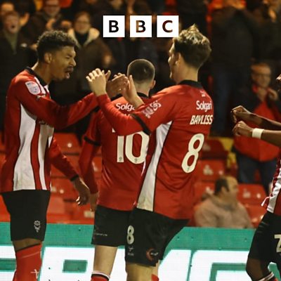 Reaction from Michael Skubala and Jack Moylan after a 3-1 win. Credit: Graham Burrell