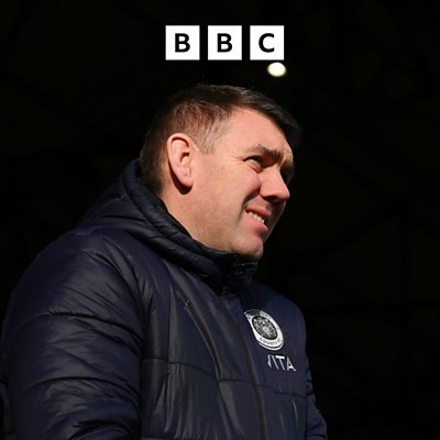 Stockport boss Dave Challinor reacts to their 3-1 loss at home to Stevenage. (Credit: GettyImages)