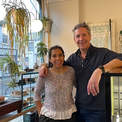 Caspar from Bread & Butter tells Anoushka about the cafe that he runs with his wife Kamla. He started by explaining their leap of faith. Image: Truro BID
