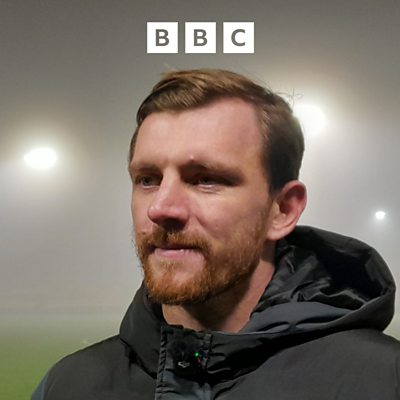 Alex Gilbey reacts after MK Dons beat Harrogate Town 4-0. Image: BBC