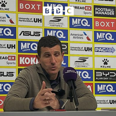 Javi Gracia reacts after Watford beat Birmingham 3-0 in the Championship. Image: BBC