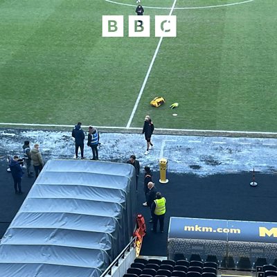 Sports Editor Geoff Doyle after Hull v Watford postponed 15 minutes before kick-off. Image: BBC