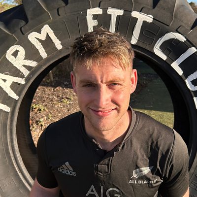 Mae'r ffermwr Robin Jones yn cynnal dosbarthiadau ffitrwydd ar ei fferm ger yr Wyddgrug.