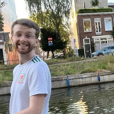 Ieuan Roberts-Harry yn dweud wrth Rhodri Llywelyn am ei waith ymchwil yn yr Iseldiroedd