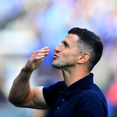 Portsmouth head coach John Mousinho chats on transfer deadline day