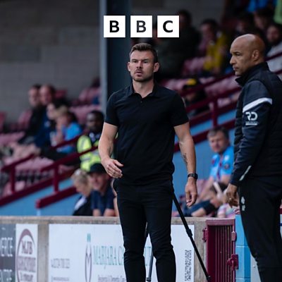 Ollie Turner talking to Andy Butler after Scunthorpe draw 3-3 at home to Solihull Moors. PIC:Scunthorpe Utd