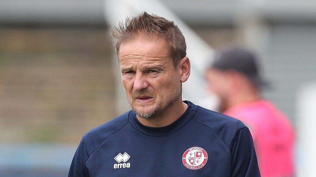 Woking boss Neal Ardley reacts to the FA Trophy defeat to Marine, with Luke Edwards