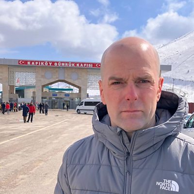 Rhodri Llywelyn ac Iwan Griffiths yn gohebu o Kapıköy, Twrci ger y ffin ac Iran