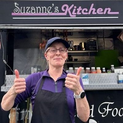 Sue Morris yn sôn am y bobl mae'n gyfarfod o'i chaban bwyd ar ochr yr A55 yn Llanddulas