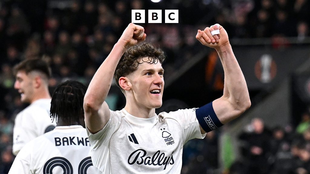 Forest captain Ryan Yates celebrates his side advancing into the Europa League quarters.