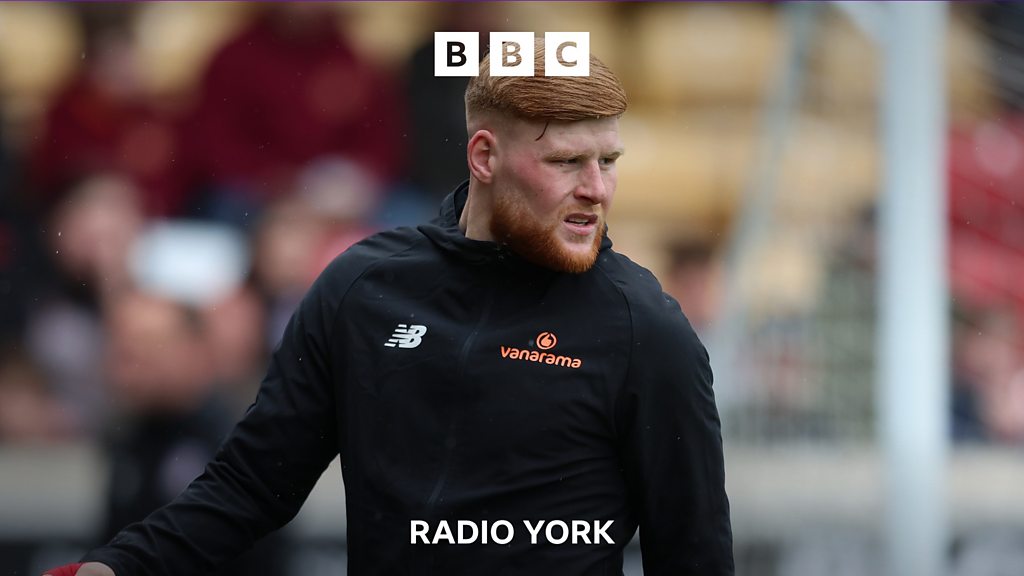 York City forward Josh Stones speaking to David Ward, after a 4-0 victory over Brackley Town in the National League.