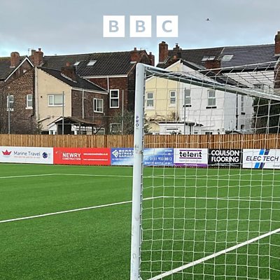 Marine manager Bobby Grant talks to the BBC's Harry Low after his side's 1-0 FA Trophy semi-final defeat to Wealdstone
