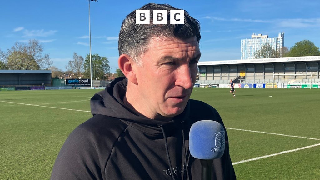 The Southend United head coach Kevin Maher praises his side’s dominant display after a 3–0 win over Sutton United, a result that moves them closer to securing a play-off place. (Image Credit: Warren Muggleton/BBC)