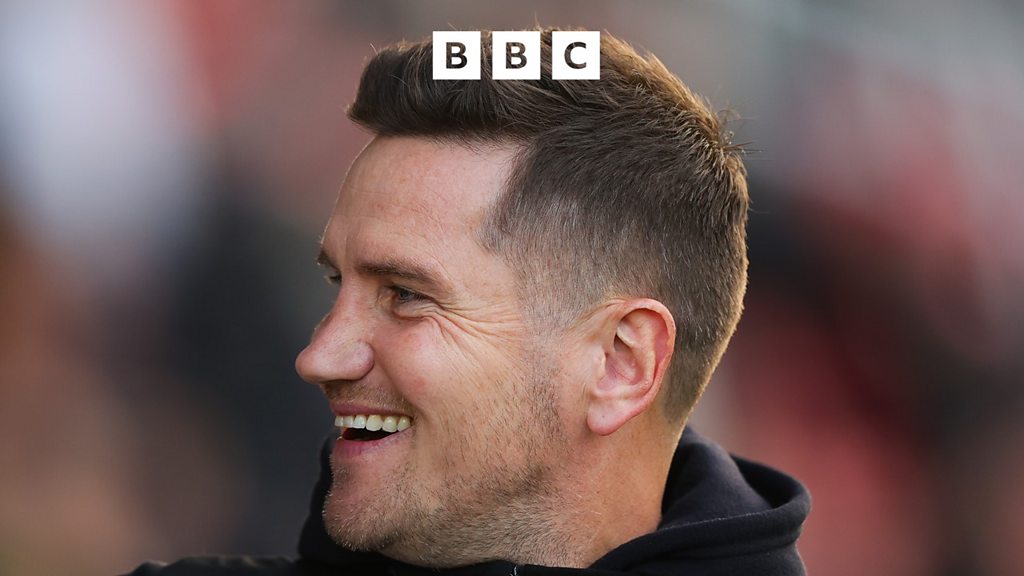 Crewe Alex manager Lee Bell speaks to Graham McGarry after their win over Salford City.