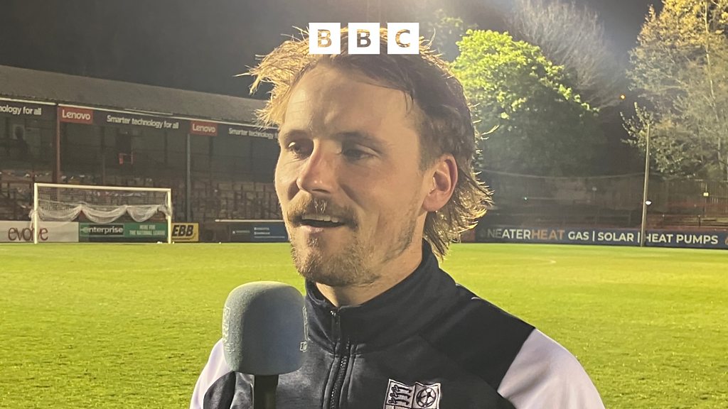 The Southend United full-back Gus Scott-Morriss after scoring his 16th goal of the season in a 2-0 victory over Aldershot Town. The win secured the Blues a National League promotion playoff place. (Image Credit:Warren Muggleton/BBC)