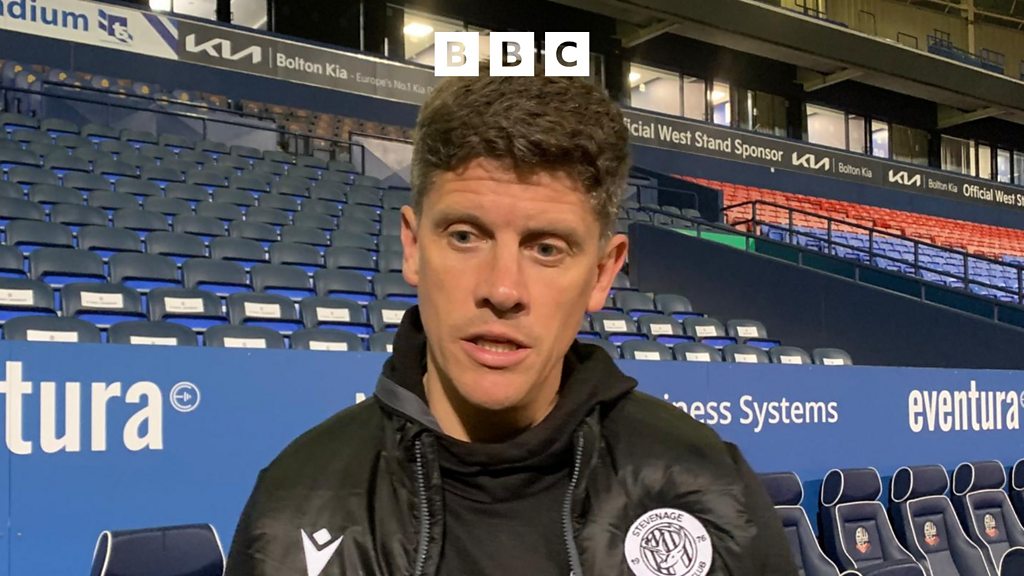 Stevenage manager Alex Revell reacts to his sides 5-1 loss at Bolton.