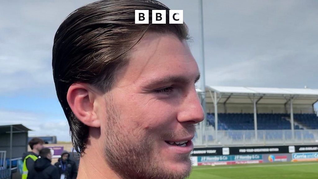 Defender Mason Hancock reacts to their win at Barrow.