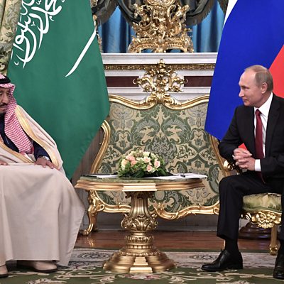 This is the first time a reigning Saudi monarch has been to Russia. The two countries have announced a billion-dollar joint investment fund, the construction of a Russian petrochemical plant in Saudi Arabia and a deal to buy Russian air defence system. We ask, is the US being side-lined? Addiction to prescription painkillers kills an estimated 50,000 people in the United States each year. Now the Health Committee of the US Senate has been examining progress on tackling the problem scale of the problem. The overuse of opioids is taking a huge toll on the economy as well, as we hear from Dr Anupam Jena, a health economist at Harvard Medical School. The campaign group Human Rights Watch is calling for intensified international sanctions against senior military figures in Myanmar. Their Asia Advocacy Director John Sifton has just returned from Myanmar. We ask him whether the displacement of Rohingya Muslims from Rakine State has stopped. (Photo: Russian President Vladimir Putinmeets with Saudi Arabia's King Salman bin Abdulaziz Al Saud at the Kremlin in Moscow on October 5, 2017. Credit: ALEXEY NIKOLSKY/AFP/Getty Images) All this and more discussed with our two guests throughout the show. Anu Partanen, a Finnish journalist and author of The Nordic Theory of Everything, in New York. And Sushma Ramachandran, former Business Editor of The Hindu in Delhi.