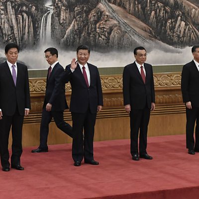We ask what the new makeup of China's ruling elite means for both China and the world. Rebecca Nadin is a China expert at the London think tank the Overseas Development Institute, and offers us her assessment. Also in the programme, Britain's economic growth rate has accelerated slightly. We take the temperature of the British economy with our regular commentator, Roger Bootle of Capital Economics. New Zealand's new prime minister Jacinda Ardern has pledged to curtail rising house prices by banning non-resident foreigners from buying homes in the country. Colin Peacock of Radio New Zealand tells us if the plan is likely to work. Plus we hear why a British celebrity has fallen foul of the UK's advertising watchdog because of her activity on Snapchat. (Picture: China's new politburo. Picture credit: AFP / Getty Images.)