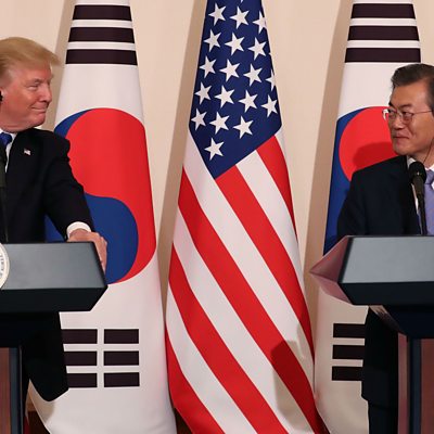 US President Donald Trump is on day two of his tour of Asia, and is in South Korea. We assess the trade relationship between the two countries with Paul Wasserman, senior analyst at Global Risk Insights in Beijing. Also in the programme, we consider the latest tax revelations from the Paradise Papers leak with Murray Worthy of campaign group Global Witness, and John Cullinane, tax policy director at the Chartered Institute of Taxation. President Buhari of Nigeria has been presenting his country's budget. We have analysis from financial and economic consultant Reginald Ibe. Plus we find out why the cassette tape is enjoying a revival as a music format. (Picture: US president Donald Trump and S Korean president Moon Jae-In. Picture credit: Getty Images.)