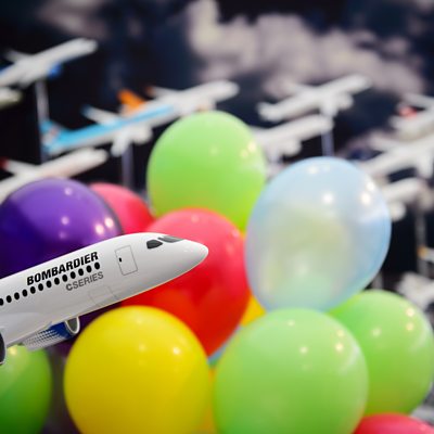 Washington's International Trade Commission overturns a decision by the US Commerce Department to impose tariffs on imports of the Canadian manufacturer's C-Series aircraft. Rival Boeing had complained that Bombardier was selling the planes at below cost price. What does this mean for President Trump's America First message? Chad Bown, senior fellow at the Peterson Institute for International Economics, explains. Can a brand new ski resort in Chechnya ever rival the slopes in Switzerland or France? We ask Chris Weafer with the Macro Advisory consultancy group. Forget Black Friday. Bargain hunters in France have been exchanging blows to get their hands on one tasty deal: chocolate spread. Picture: A model of a Bombardier C-Series jet is pictured among promotional balloons (Credit: LEON NEAL/AFP/Getty Images)