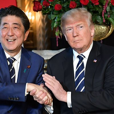 As President Donald Trump welcomes Shinzo Abe to Florida, we'll explore what the Japanese PM is after - in negotiations over North Korea and in trade terms too. Richard Bush of the Brookings Institution in Washington DC gives his analysis. Also, as the World Bank turns to the capital markets to raise money for the world's poorest - we ask if it's a safe investment? And what has the Commonwealth ever done for us? We'll canvas opinion in India ahead of the organisation's summit in London. And, we have a report from the Former Yugoslav Republic of Macedonia over a dispute between the country and Greece over its use of the name Macedonia Fergus Nicoll is joined by Andy Uhler from American public radio programme, Marketplace, who's in Austin, Texas and by Catherine Yeung from Fidelity International in Hong Kong. (Picture: Donald Trump greets Shinzo Abe as he arrives for talks in Florida, USA. Credit: Mandel Ngan/AFP/Getty Images)