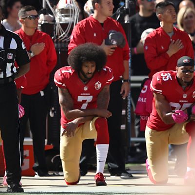 Earlier in the year sportswear giant Nike hired Colin Kaepernick for their adverts. The former American football star caused controversy by kneeling during the national anthem. As a result of the ad campaign some people said they would boycott Nike goods and some even posted videos on Twitter of burning trainers. Now Nike is holding its annual shareholders' meeting, and the company is under scrutiny as never before. We hear from retail analyst Neil Saunders on what might be said. A Canadian marketing company is advertising for part-time cannabis tasters after recreational cannabis use becomes legal in Canada in a few weeks’ time. The company, A Higher Level of Thought, were surprised by the level of response, as we hear from their boss Greg Pantelic. The trade war between the US and China has intensified, as each side slaps higher border taxes on each other's products. Beijing is considering cutting tariffs on products imported from most of its trading partners. Such a move would make many foreign-made goods cheaper for Chinese consumers, just as products from America get more expensive in China. Matt Gold, Professor of International Trade Law at Fordham University in New York gives his view. And finally, Britain is not really used to long, hot summers. But there has been an unusually sustained period of low rainfall. The drier weather has been a welcome boost to the UK's growing wine industry, which saw sales increase almost a third over the past two years. The BBC's Stephen Ryan has been looking into North London wine. All throughout the show, we’ll be joined by Jodi Schneider, Senior International Editor at Bloomberg in Hong Kong and Dave Shaw, Politico's executive producer for audio and podcasts in Washington. PHOTO DESCRIPTION: Colin Kaepernick and teammates of the San Francisco 49ers kneel in protest during the national anthem at Levi's Stadium in Santa Clara, California on October 23, 2016. PHOTO CREDIT: Ezra Shaw/Getty Images