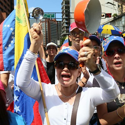 Supporters of opposition leader Juan Guaidó fill the streets of the capital, Caracas, and are calling for President Maduro to go. Three weeks after Guaidó declared himself interim president, we ask what has changed and how businesses are coping with the ongoing shortages. We speak to Francisco Ibarra who advises companies looking to invest in Venezuela. We hear from Catalonia where 12 separatists have gone on trial this week accused of sedition and rebellion. Plus, the Global Positioning System - or GPS - has won an engineering prize, and we hear from one of its inventors, Hugo Fruehauf. Vishala Sri-Pathma is joined throughout the programme by Andrew Peaple of the Wall Street Journal in Hong Kong and academic and author Cathy O'Neil in New York. (Photo: A protester in Caracas, Venezuela. Credit: Edilzon Gamez/Getty Images)