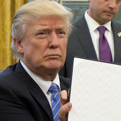 Talks between the US and Canada about amending the North American Free Trade Agreement (Nafta) have ended for the week, with no deal in sight. Friday was the original deadline for a deal, but US officials said they would meet their Canadian counterparts again next week in an effort to reach agreement. Does the passing of the deadline matter? We ask David Collins, professor of International Economic Law at City University in London. Coca-Cola has just bought Costa the coffee chain. In a deal worth $5bn, what does it say about where Coca-Cola thinks the future of the beverage industry is? And we report from India, where production has stopped of the Tata Nano - marketed as the world's cheapest car. We also review the week's biggest business news with guests Lisa Abramowicz from Bloomberg in New York and Nina Trentmann, News Editor with the Wall Street Journal in London. (Image: President Trump signing a document in the White House. Photo by Ron Sachs - Pool/Getty Images)